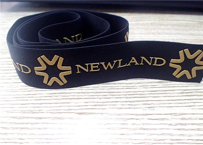 30MM Black Jacquard Elastic Band Silk-screen Printed With Glossy Golden silicone Logo For Clothing